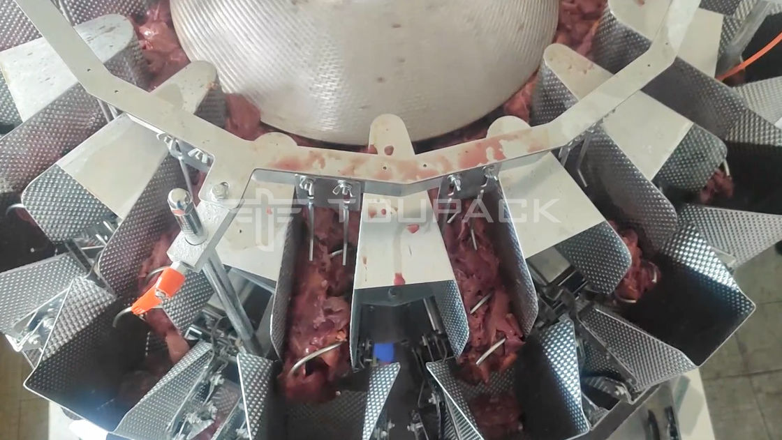 A pesadora multi-cabeça de material pegajoso Toupack é uma solução confiável e econômica para pesar materiais pegajosos como fígados de frango.É feito de aço inoxidável de alta qualidade e está equipado com um ecrã táctil, sistema de accionamento do servomotor e uma precisão de ± 0,2-1,0 g. É certificado com CE e ISO 9001, e tem um consumo de energia de 1,5 kW.
